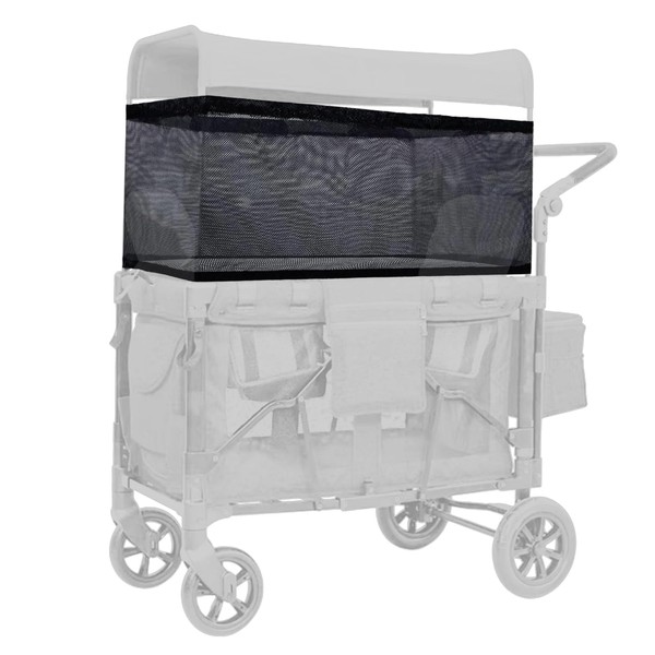 HKYLRAT 4-Sided Stroller Sunshade Net, Adjustable Wagon Attachment Cover Canopy Universal Wagon Accessories for W2 W4 Wagon All Models, Not Obstructing Vision Sunshade Net (Black), 118″ × 13″