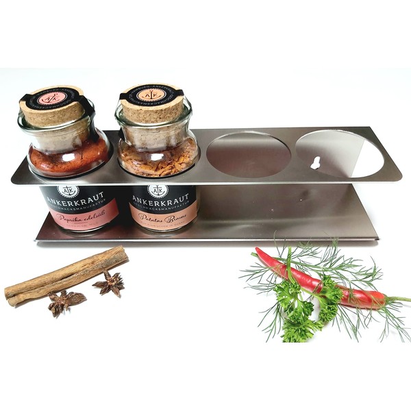 - Space-saving and orderly look, expandable as desired, rust-proof and food-safe. Equipped with 4. Spice jars possible.