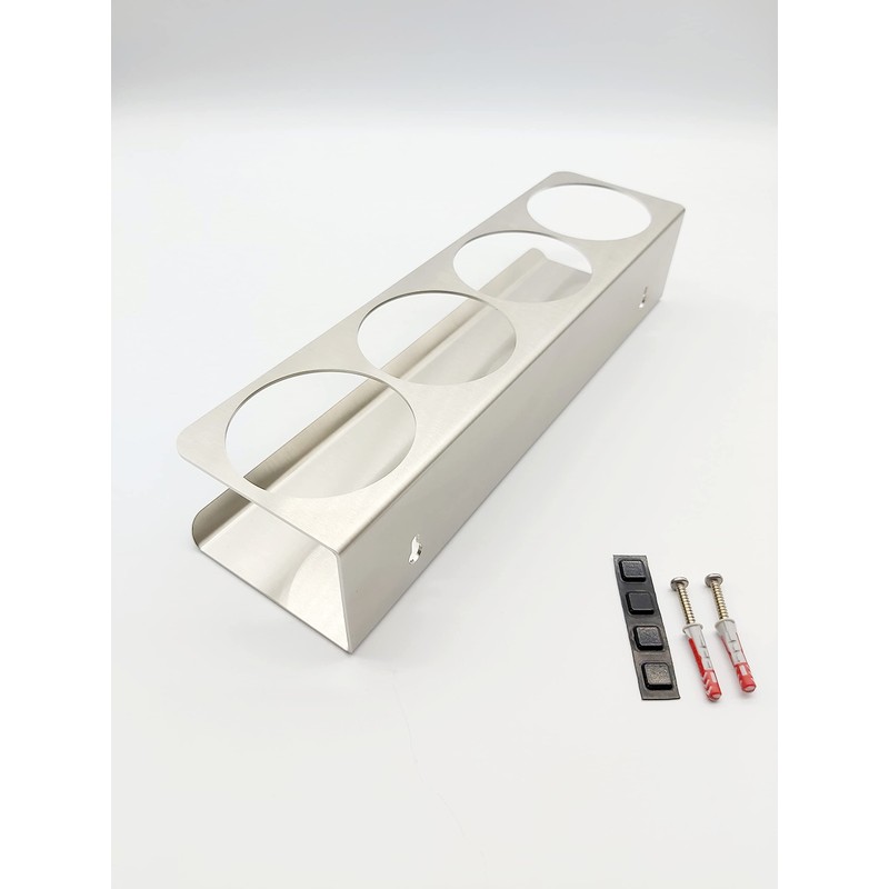 HL-Perfektion-in-Edelstahl Spice Rack Compatible with 4 x Ankerkraut Cork Jars Made of Solid Stainless Steel, as a Stand or Hanging Shelf, Silver, 28 x 8.5 x 6 cm