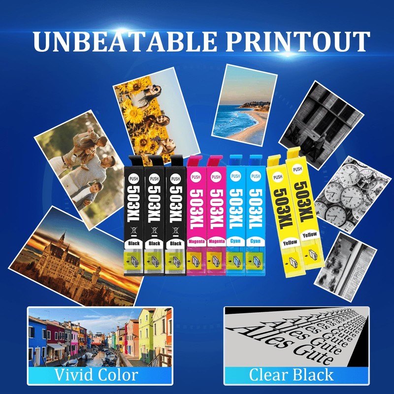 • 9 pack 503XL: 3 x 503XL black, 2 x 503XL cyan, 2 x 503XL magenta, 2 x 503XL yellow. A carefully assembled set with more black ink cartridges to meet the fast consumption of black in everyday life