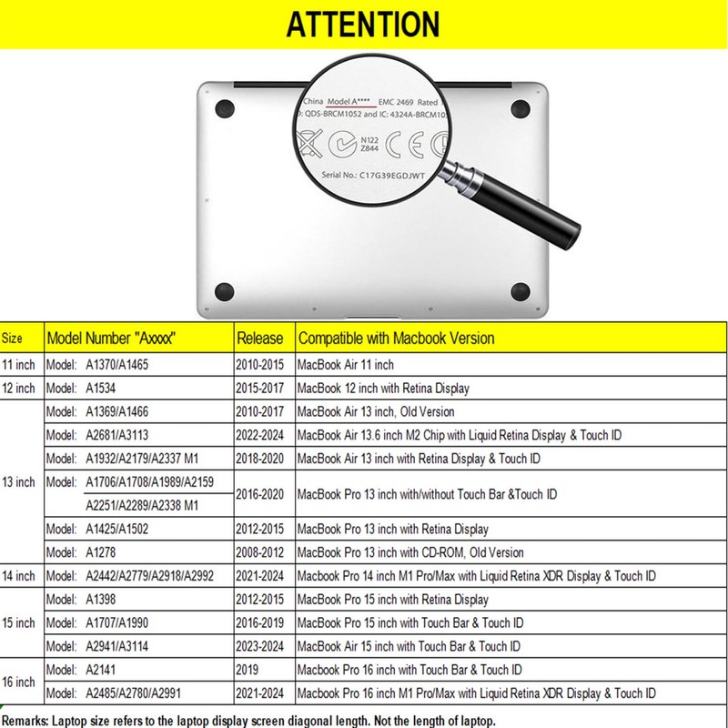 Note: Please kindly check the model number "AXXXX" on the bottom of your for MacBook before purchase