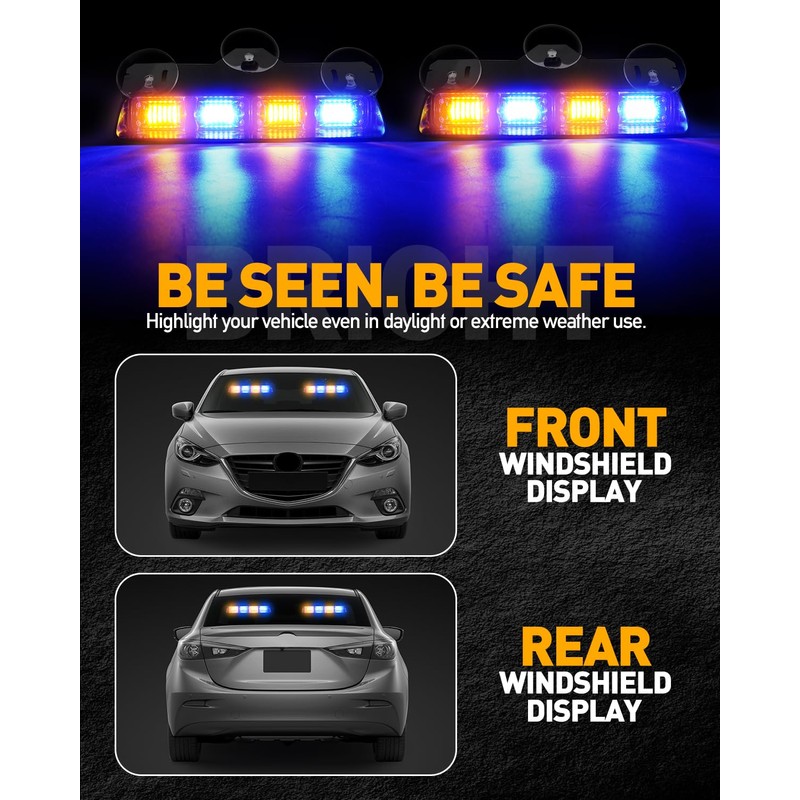 - đăEASY TO INSTALLă: With adjustable brackets, 6 suction cups, and 9.84ft long cable, you can easily place these dash strobe lights on the window and install on the windshield or rear window. No need to drill holes. The length of the wire from light to light is 4.92FT.