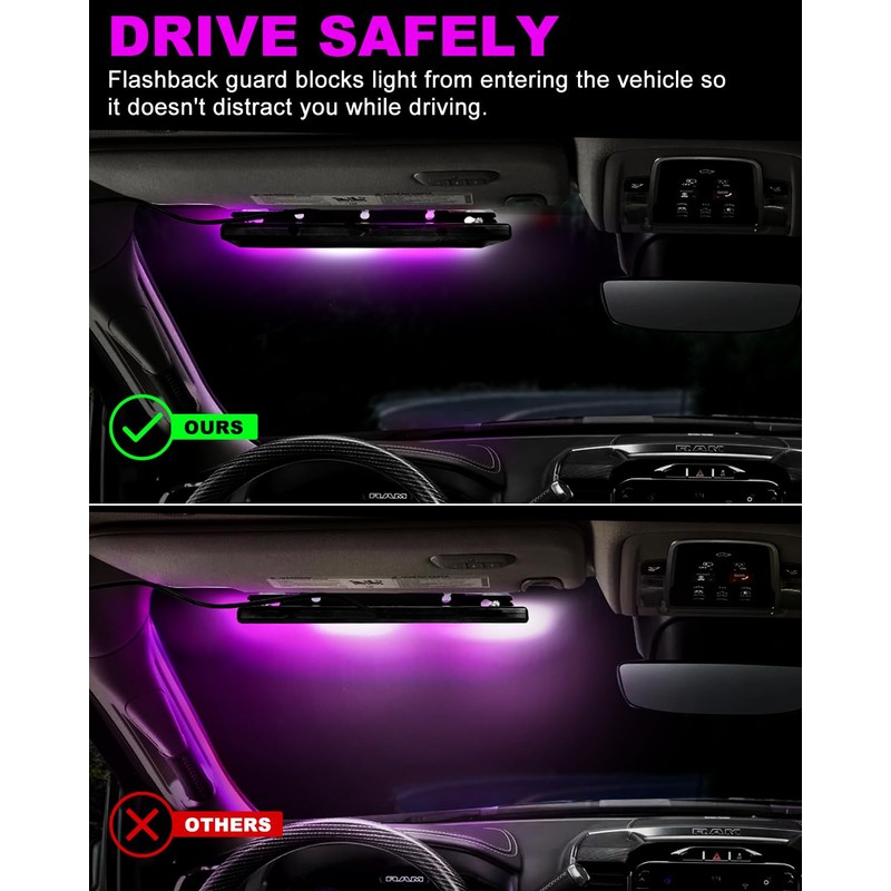 - STAY VISIBLE. DRIVE SAFE: HLauto 2x16.8" dash strobe flashing lights are designed with 48 high-brightness LEDs and upgraded 4D lens, making it brighter than the other 32 LED strobe light bars. Keep your vehicle visible to ensure your driving safety