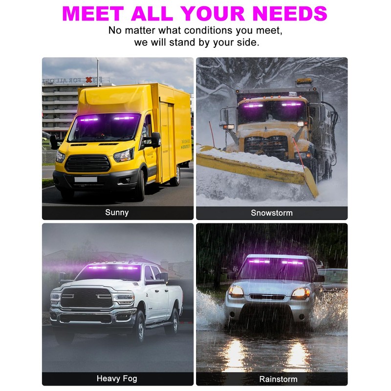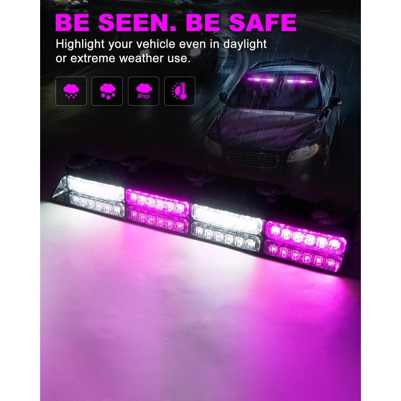 HLauto HLAUTO 6Z4J Emergency Dash Strobe Lights: 2x16.8 inch Purple White Safety Lights, 48 LED Flashing Warning Hazard Interior Windshield Visor Traffic Light Bar for Trucks, Construction Vehicles