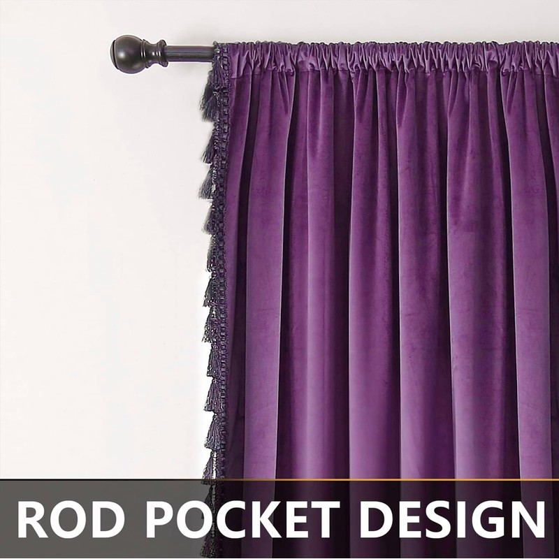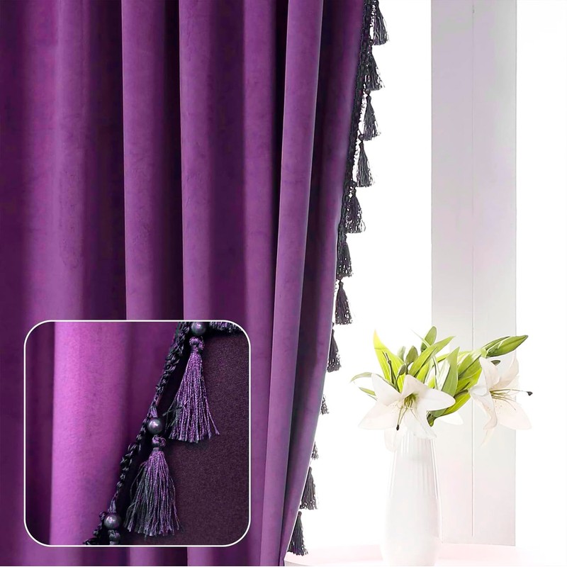 - BEAUTIFUL AND PRACTICAL DESIGN: The design of velvet fringe blackout curtains is both beautiful and practical, and can bring a different style and atmosphere to your home environment. We offer ample sizes and colors, aiming to meet the various needs of our customers.