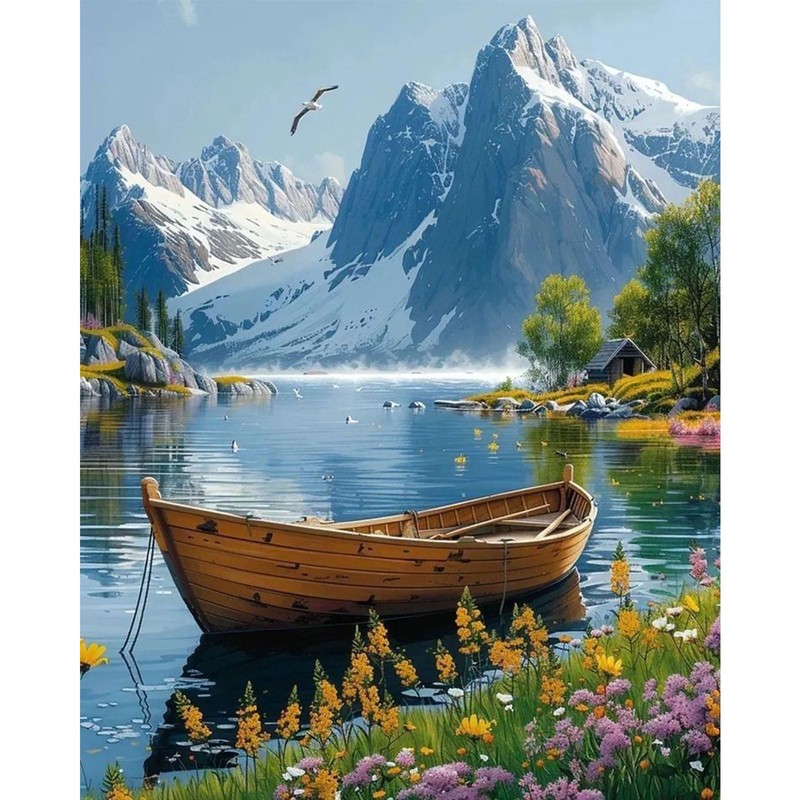 Hlison Paint by Numbers Kit for Adults, Mountains Landscape Paint by Number for Beginners, DIY Boat Adult Paint by Numbers Kit for Home Decor Gift - 16x20 Inch