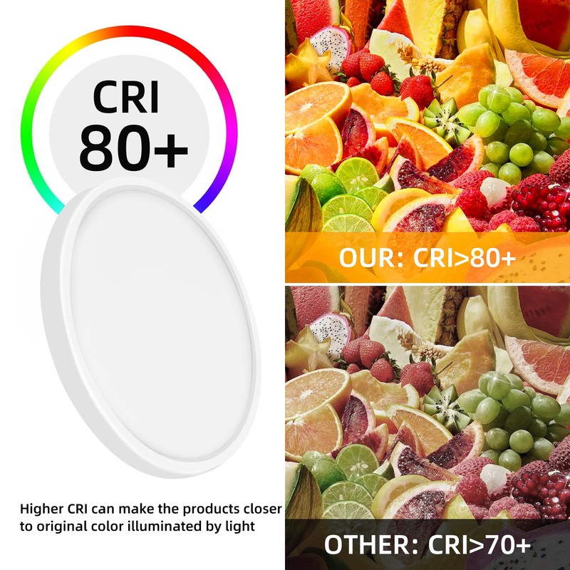 - Sleek and Easy Installation - With its ultra slim deghting with this ceiling light fixture. The natural and uniform lighting sources provide eye protection, while the high CRI (>80) ensures a true and vivid lighting experience. This ETL certified flush mount LED fixture is stable and safe to use.sign (less than 1 inch) and slide and lock mounting bracket, this flush mount light fixture is perfect for low ceiling areas without causing any glare. It is also suitable for damp locations.