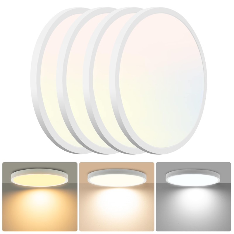 Hlite 4pack 9 Inch Flush Mount LED Ceiling Light Fixture,18W 1800LM Super Slim Light Fixtures Ceiling Mount 3000K/4000K/5000K 3CCT Selectable,Ceiling Light Fixtures for Kitchen,Bedroom (White)