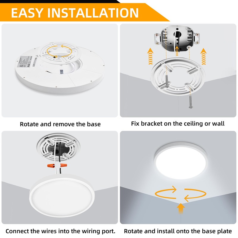 - Eye Protection & Brilliant Quality - Enjoy flicker-free, blue light-free, radiation-free, and UV-free lighting with this ceiling light fixture. The natural and uniform lighting sources provide eye protection, while the high CRI (>80) ensures a true and vivid lighting experience. This ETL certified flush mount LED fixture is stable and safe to use.