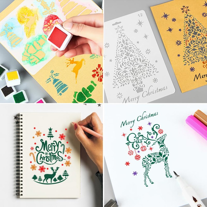 - Package includes:You will get 12 pieces Christmas Painting Templates,12 styles:including Fawn Christmas,Christmas gifts,season's greetings,Santa's sleigh,Christmas wreaths,Merry Christmas,Christmas gift boxes,Christmas fawns,Christmas snowflakes,Christmas bouquets,Christmas pendants,Christmas trees.