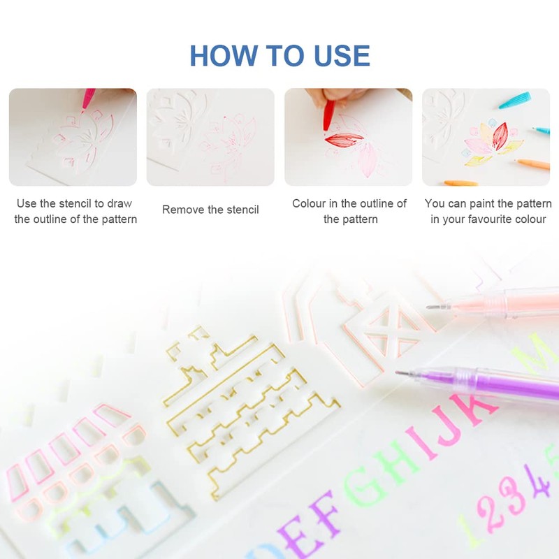 • Versatile:Hollow design is big enough to fit your pen, ballpoint pen, color pen, pencil, etc.Hollow Out Art Painting Stencils in Assorted Patterns for Craft Projects, Scrapbook, Cards for scrapbook, gift card, Art craft and school project.