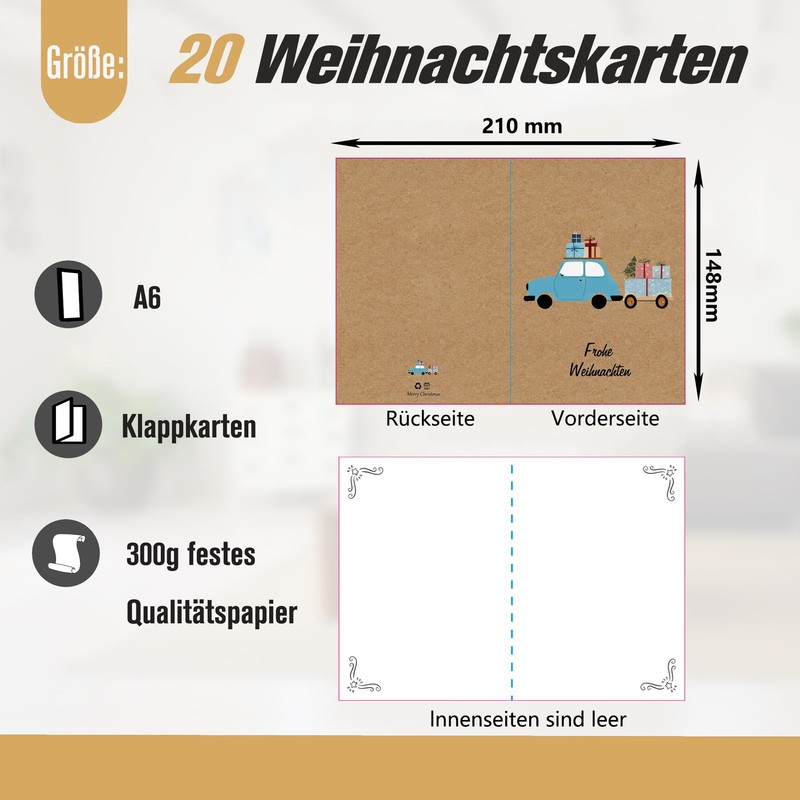 • Christmas cards: card set with Christmas motif in vintage kraft colours (DIN A6), printed on thick and high-quality paper (300 g/m²), the inside is blank and easy to write on, ideal for your private or business Christmas wishes.