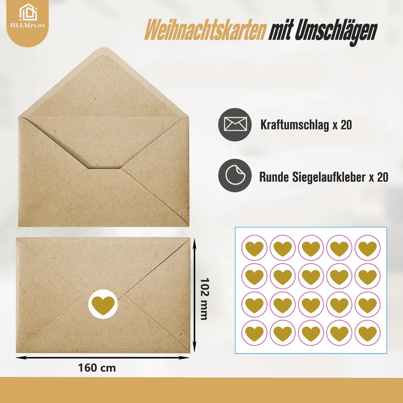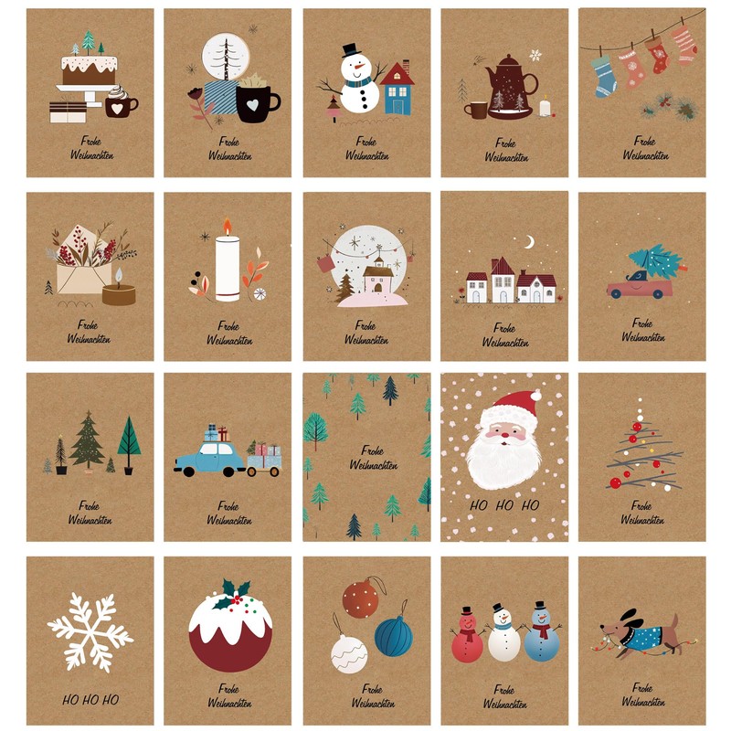 • You will receive: our Christmas card set contains 20 beautiful Christmas cards with different motifs and 20 matching kraft paper envelopes and 20 round small seal stickers.