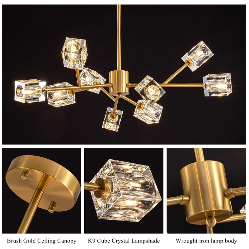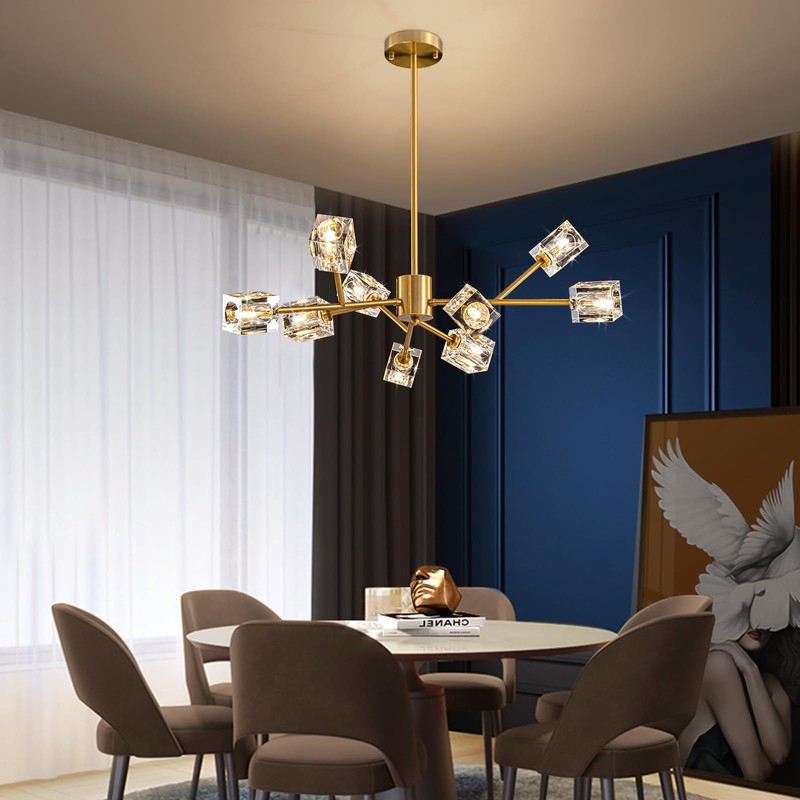 - High quality k9 crystal and the surface is finely cut into square cube shapes, which makes the chandelier full of design and stunning when crystal chandeliers for dining room are turned on