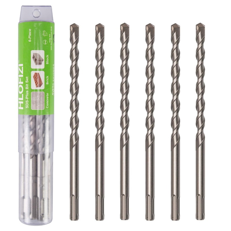 HLOFIZI 1/2" x 8" SDS Plus Hammer Masonry Drill Bits Carbide Tipped for Concrete, Brick, Block, Stone, 6 Pack