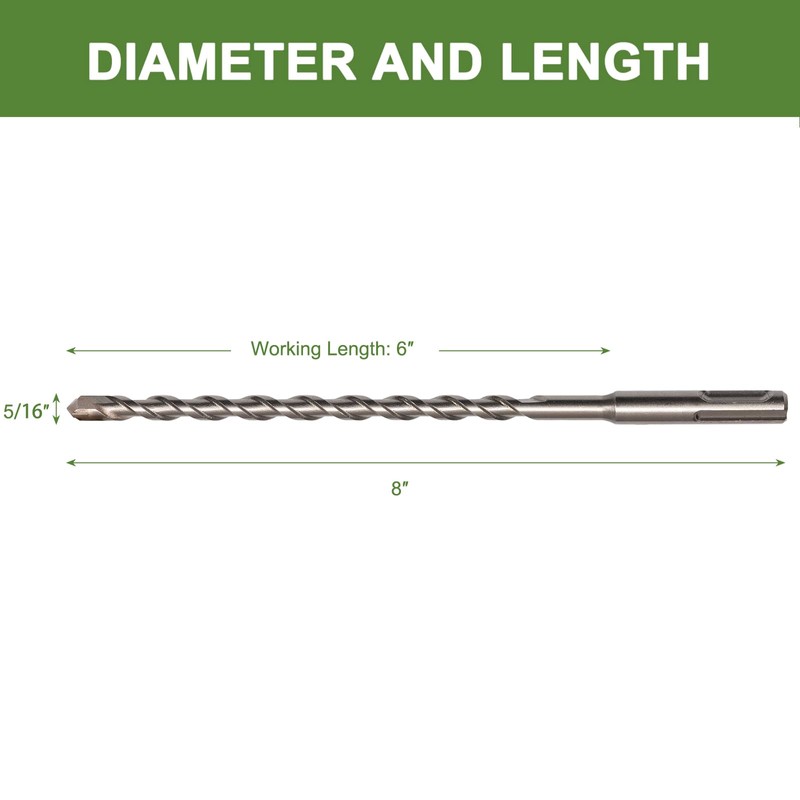- Longer Life - 5/16 inch SDS masonry drill bits with premium head tungsten carbide tips, for up to 5x longer life in concrete, stone, cinder block or brick wall, rock and other masonry material