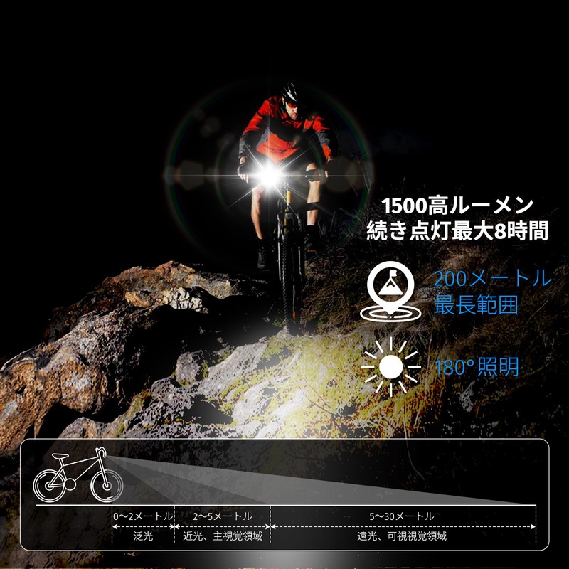 HLOMOM Bicycle Light, Waterproof, Road Bike Light, USB Rechargeable, Bicycle Headlight, Front Light, 1,500 Lumens, 4,500 mAh, 5 Dimming Modes, High Brightness, Anti-Vibration, Anti-Glare, Flashlight, Power Outages, Earthquake Countermeasure, Mountain Cli