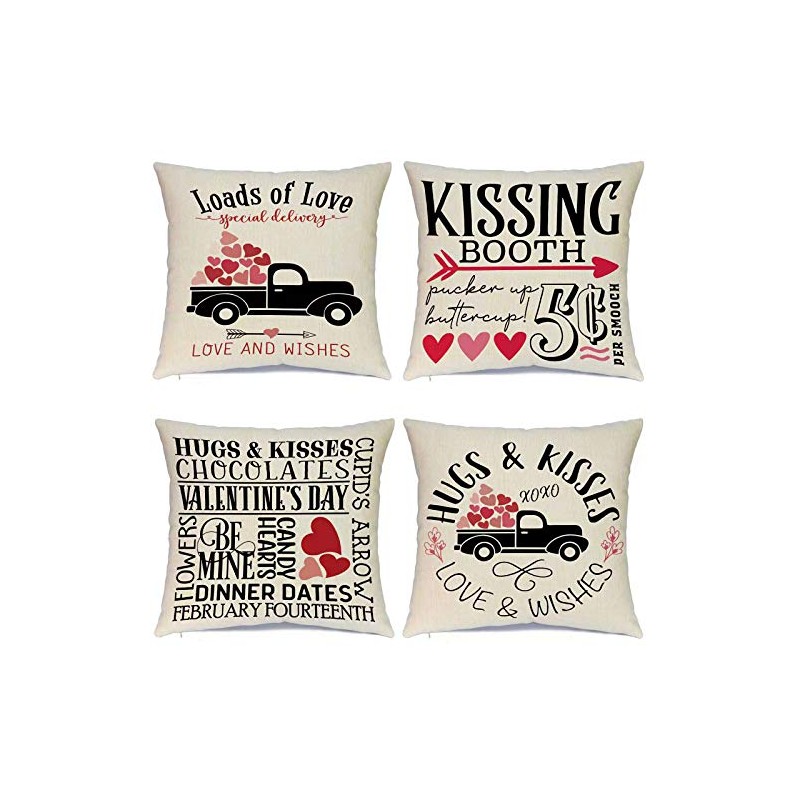Hlonon Valentines Pillow Covers 18 x 18 Inches Set of 4 - Buffalo Check Plaid Cushion Cover Case Pillow Zippered Square Pillowcase