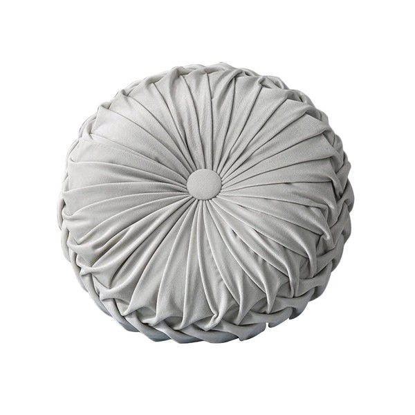 HLOVME Round Velvet Pillow for Couch Small Handmade Decorative Throw Pillow for Bed Bedroom 13.7” Light Grey