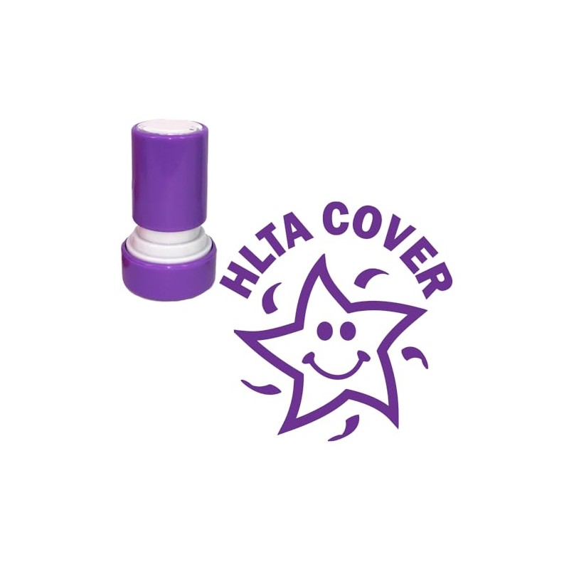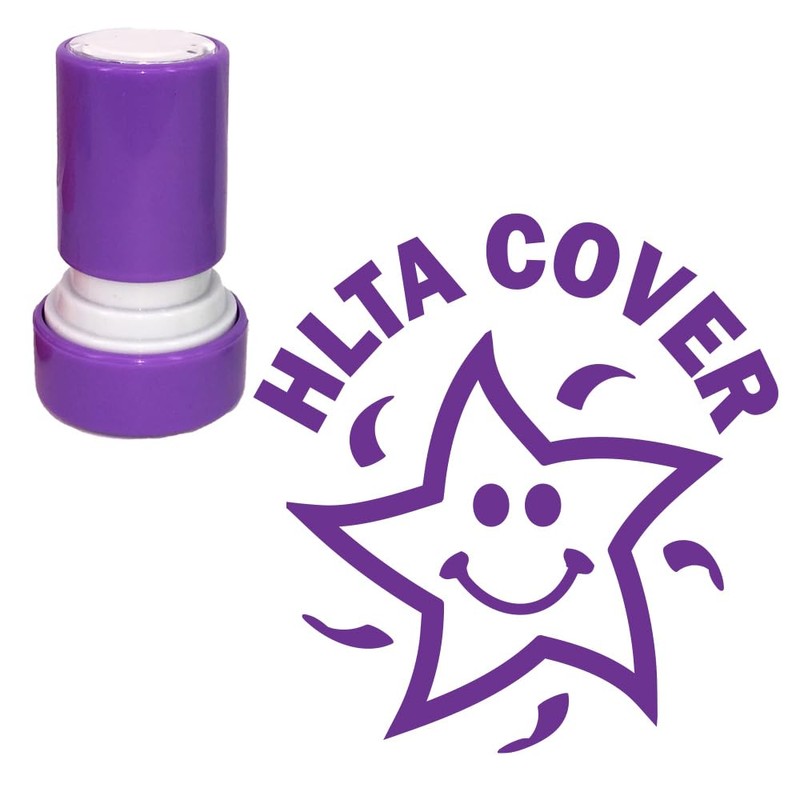 HLTA Cover, Self-Inking Teacher Stamp (High Level Teaching Assistant). 22mm, Purple Ink, Cute Smiley Star Design