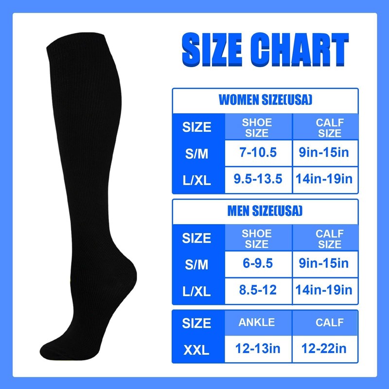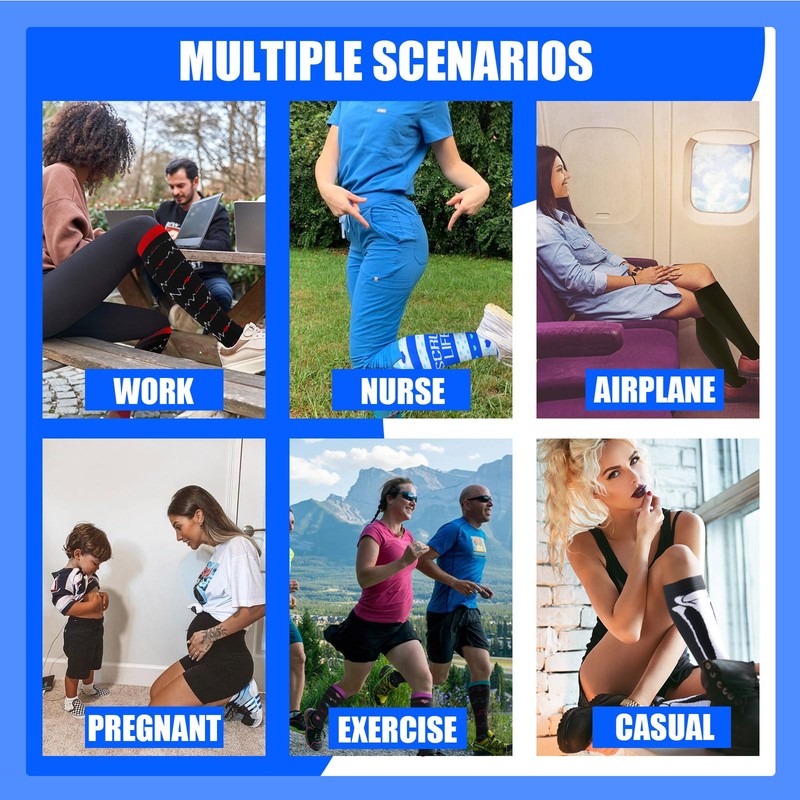 - 【Suitable for Multiple Occasions】Knee high compression socks women are perfect for those who sit or stand for long periods, travel, flights, doctors, nurses, and pregnant women.Athletic compression socks are also a choice for athletes due to the support they provide during physical activities.They make a thoughtful present for family or friends.