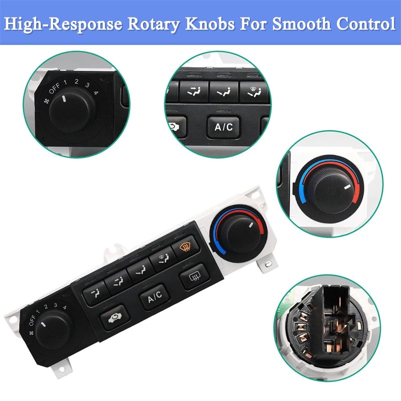- Product Feature: The heater climate control system is a multi-functional unit with cooling, heating, and defrosting capabilities. It precisely controls interior temperature, wind speed, and direction, ensuring clear visibility in harsh conditions. Its flexible knob-and-button design allows for easy and adjustments, making it a reliable choice for drivers