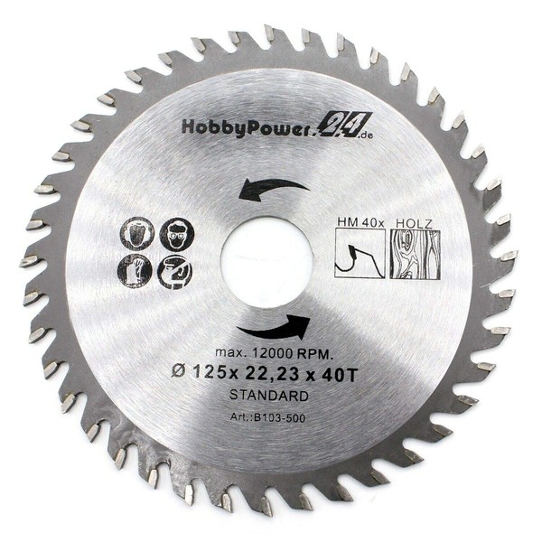 HM Circular Saw Blade Diameter 125 mm x 22.23 mm / 20 mm / 40T Teeth for Wood Plastic