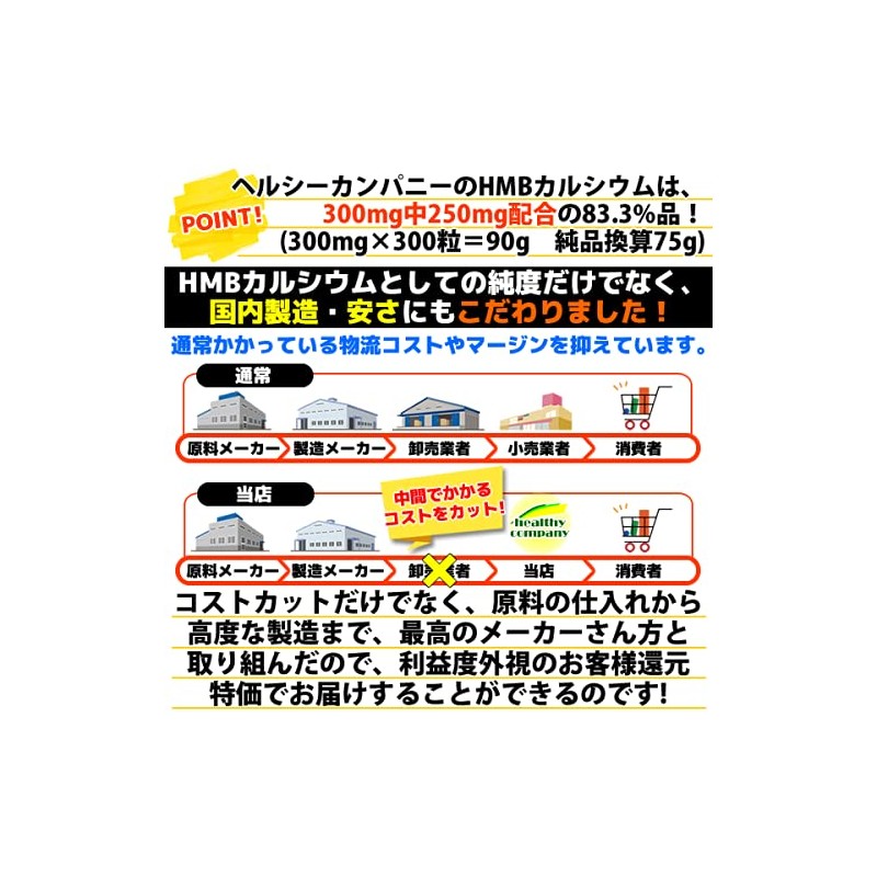 HMB サプリ 75000mg配合 HMBカルシウム 300mg×300粒 純度83.3% 国内製造 ヘルシーカンパニー