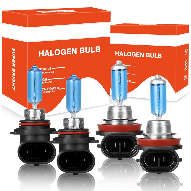 HMCYCI Fit for Fiat 500 2012-2019 High Performance Halogen Headlight Bulbs,9012 High/Low Beam + H11 Fog Light Replacement Bulb Kit,Pack of 4