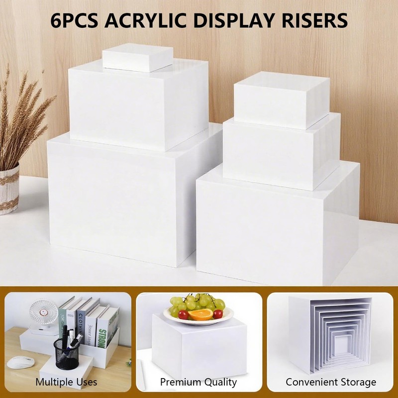 Hmdkepf 6Pcs Buffet Risers, Food Risers for Buffet Table Display Stand Shelf for Party Catering Dessert Collectibles Acrylic Cube Boxes Display with Hollow Bottoms (Size 8"-7"-6"-5"-4"-3")