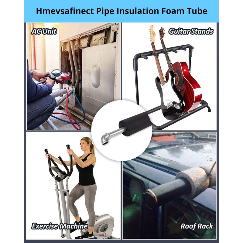 Hmevsafinect 2 Pcs Pipe Insulation Foam Tube, 3/8" TK.x 5.9 FT Foam Tubing for AC Unit, Guitar Stands, Exercise Machine Handle & Roof Rack (2pcs black, 3/4" ID x 3/8" Thick. x 1-1/2" OD x 5.9 FT)
