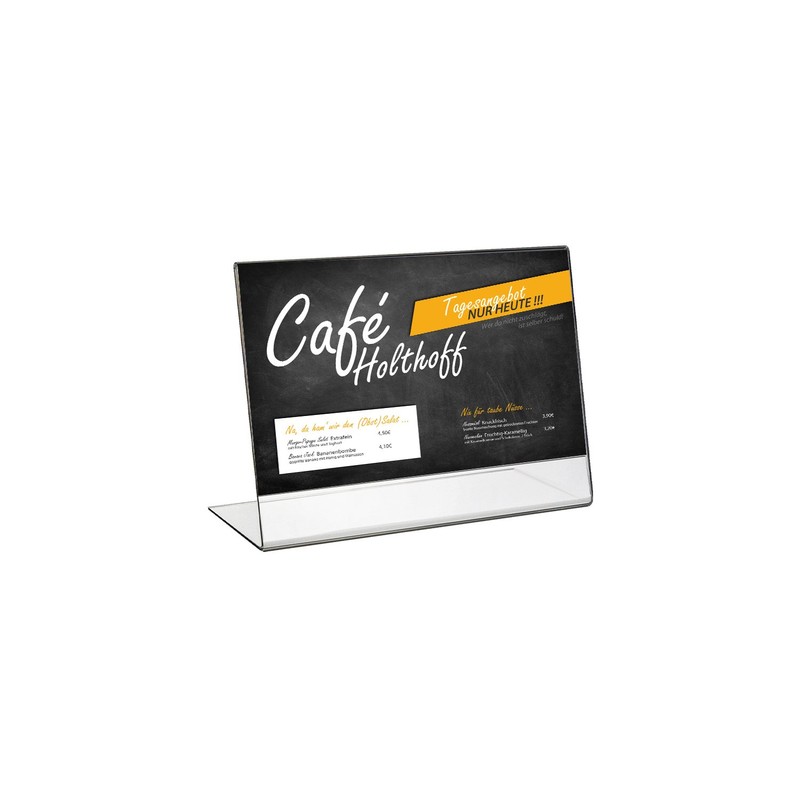 HMF 46931 Acrylic Table Stand Oblique DIN A6 Landscape Format Crystal Clear