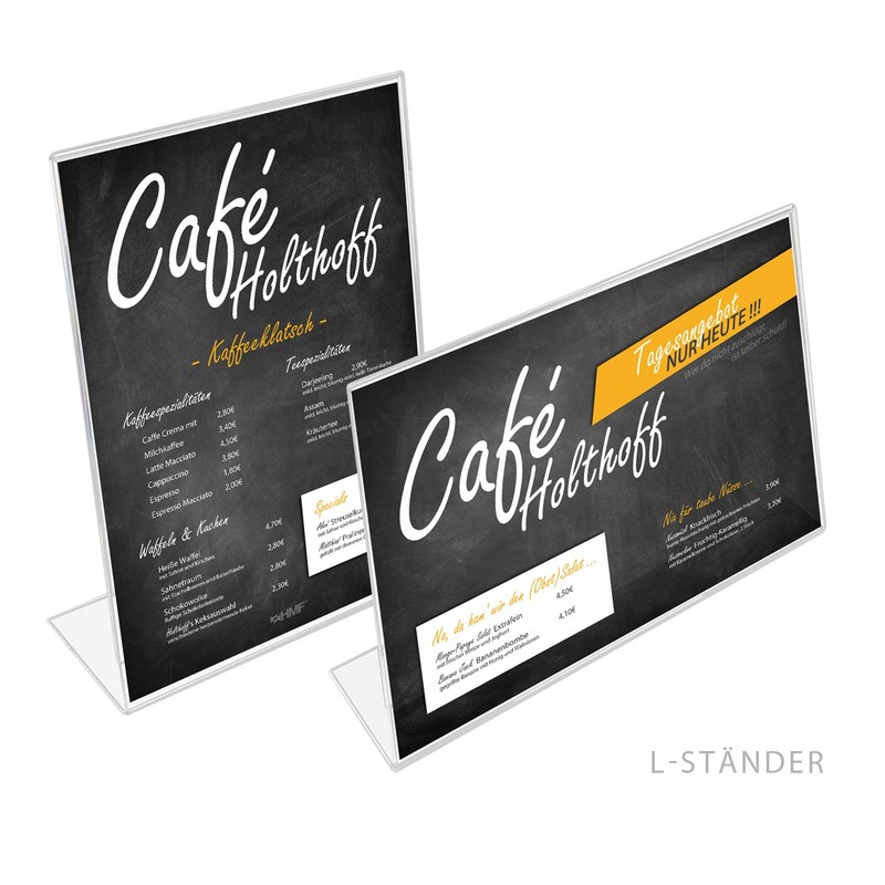 - Suitable - side sheet slot for menu and information cards in DIN A6 landscape format