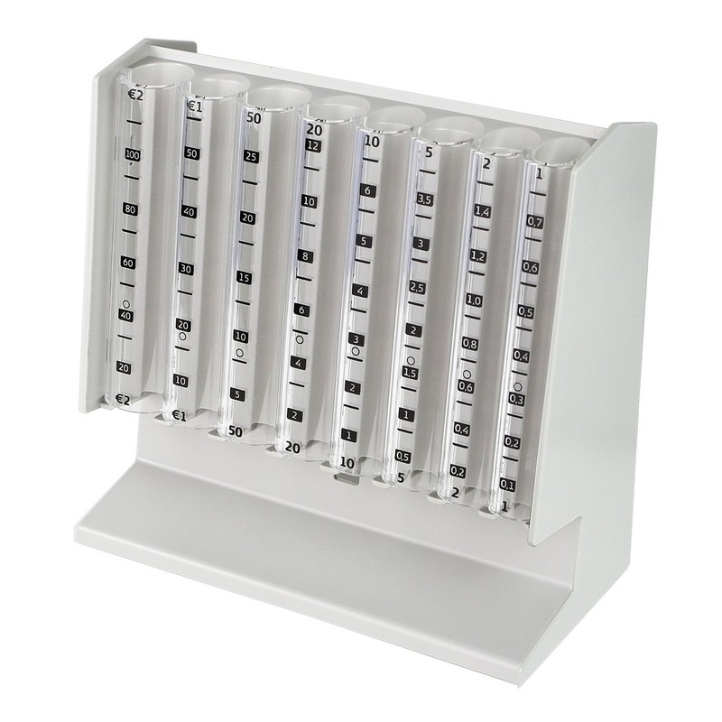 - For 1 Cent - 2 Euro coins and 5 or 10 euro notes, easy quick removal and replenishment