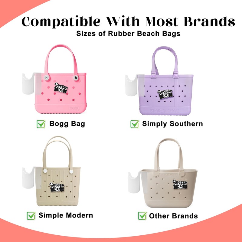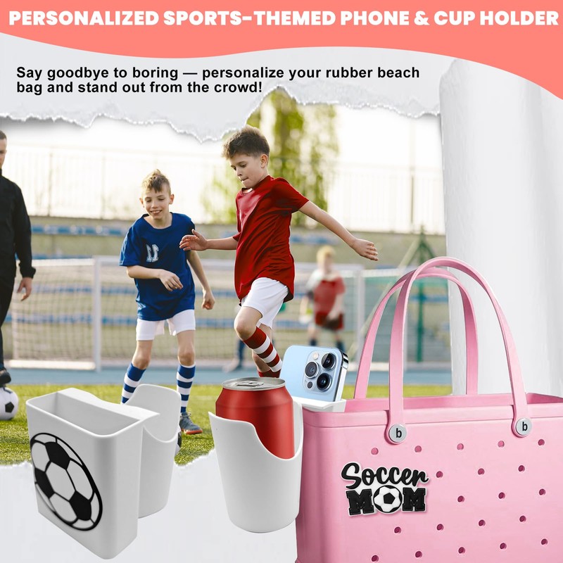 HMGES Soccer Phone and Cup Holder for Bogg Bag,With 1 Soccer Mom Charm,ABS Organizer Accessories for All Brands/Sizes Rubber Beach Bag