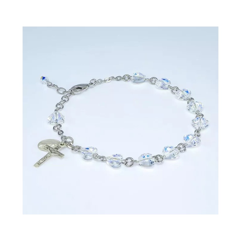 HMH Religious Fine Austrian Crystal Aurora Heart Shaped Bead Sterling Silver Rosary Bracelet