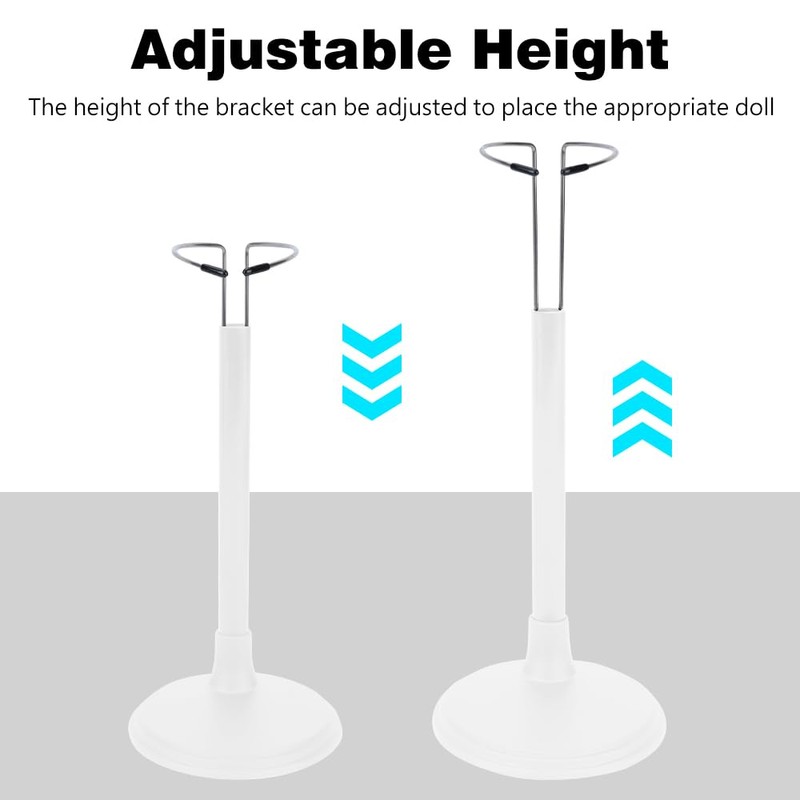 - 【Adjustable Size】The action figure stand is easy to remove and place, and the middle part is retractable. 2pcs doll stand height can be adjusted to 8"-11" suitable for 12" dolls and 2pcs doll stands height can be adjusted to 12"-15" suitable for 18" dolls. You can adjust it according to your needs. These doll support stent stand accessories can display your dolls to a large extent.