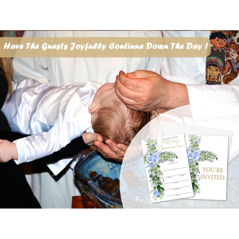 【PROPER SIZE】: Invitations measure 4" x 6". These invitation cards are perfect for inviting your family and friends to your party and spend a good time together. The invites set the tone for a joyous and spiritual event, full of love, prayer, and cherished memories.