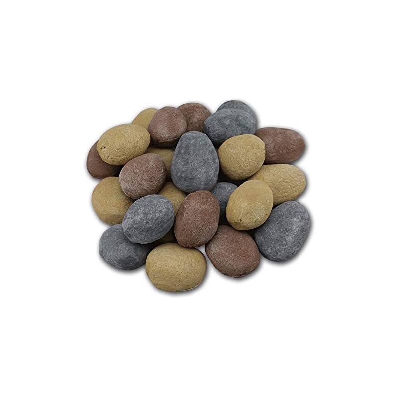 hmleaf HMB 24 Pcs Khaki Stone-Like Ceramic Pebbles for Gas fireplaces, Stove, Gas firepit