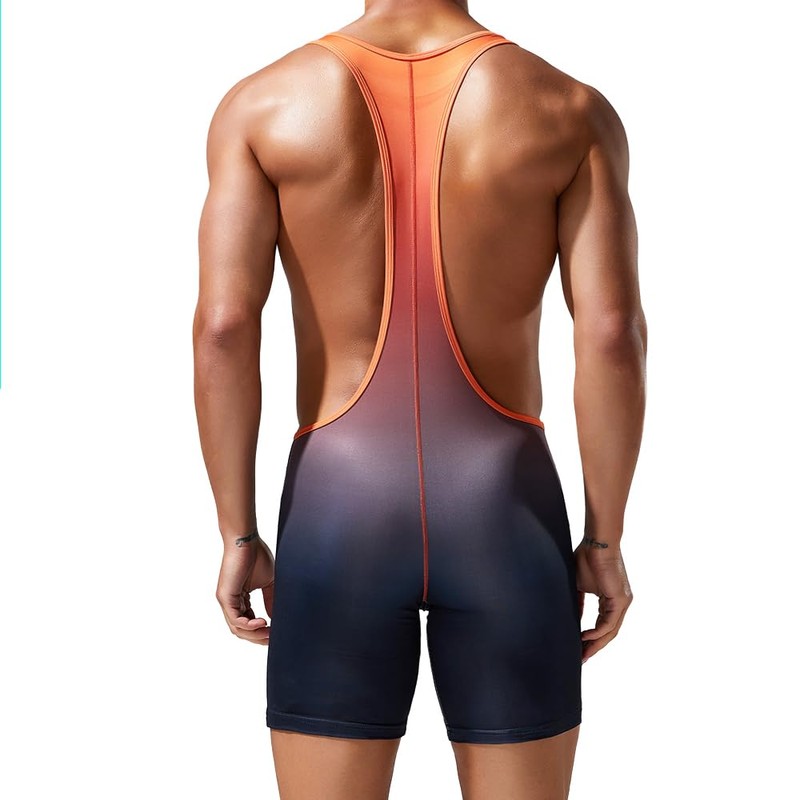 HMRICHNO1 Men's Athletic Supporters Active Gradient Bodysuits Wrestling Singlet Fitness Jumpsuit Boxers Leotard