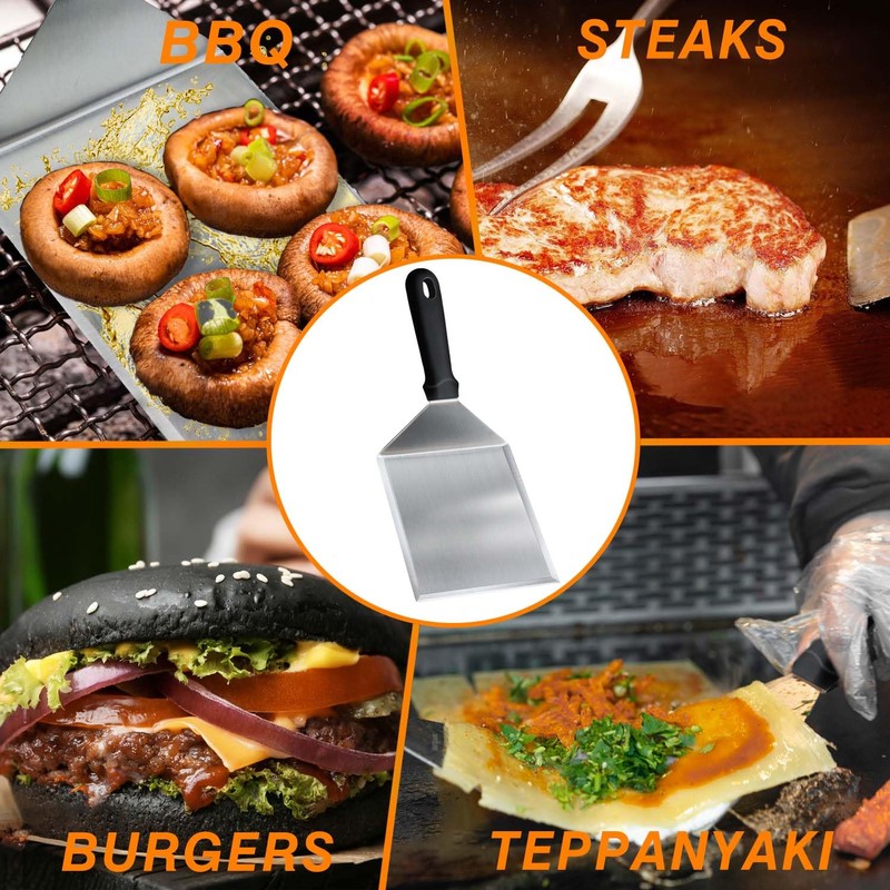 - Perfect Smashed Burgers Set: The 6" burger press features a 3/8" raised proper edge, which can make you create even and consistent smashed burgers, 6.3-inch x5.11-inch large iron spatula with heat-resistant handle. Press, season and flip to make delicious burgers easily at home!