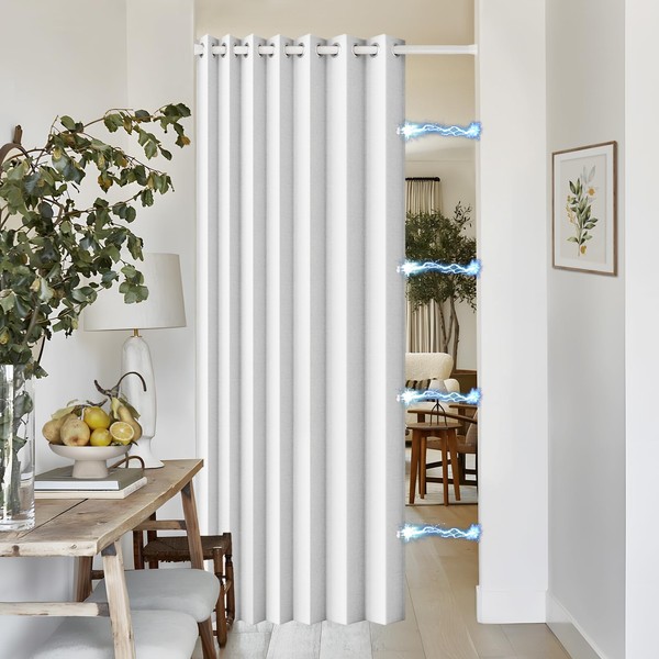 - Mutiple Use: Suit as a room divider, closet door, laundry room, hallway partition, pantry cover, or temporary door or window treatment. It’s ideal for various spaces like bedroom, bathroom, and wardrobe. Low-maintenance and durable, it’s a lasting alternative to traditional doors, even outperforming sturdy folding closet doors