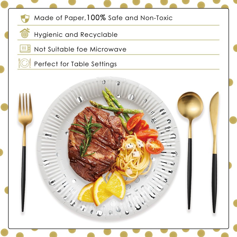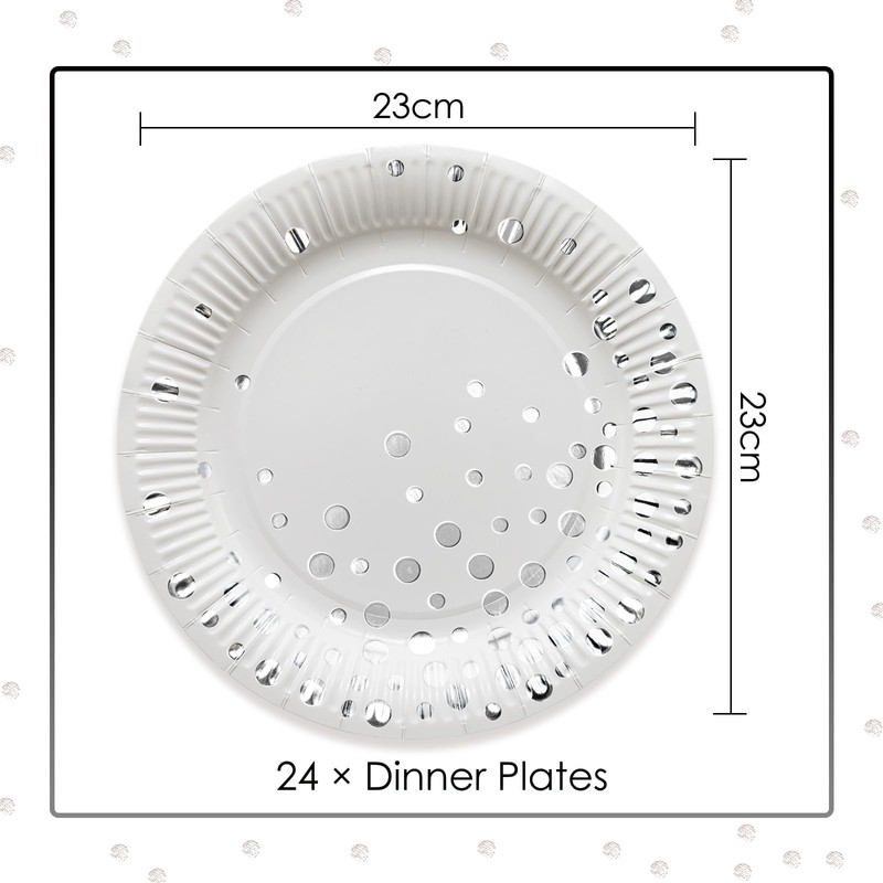- Hnh Party Paper Plates Set 24 Pieces White With Silver Foil Polka Dots 23Cm Dinner Plates Set For Party Table Decorations