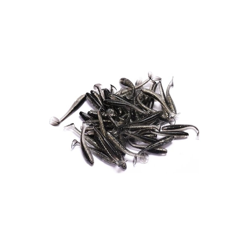 HNJHTZ 50pcs Soft Plastic Swimbait, 7cm Soft Fishing Lures, T-Tail Swim Baits Kit for Bass Trout for Saltwater and Freshwater (Black)
