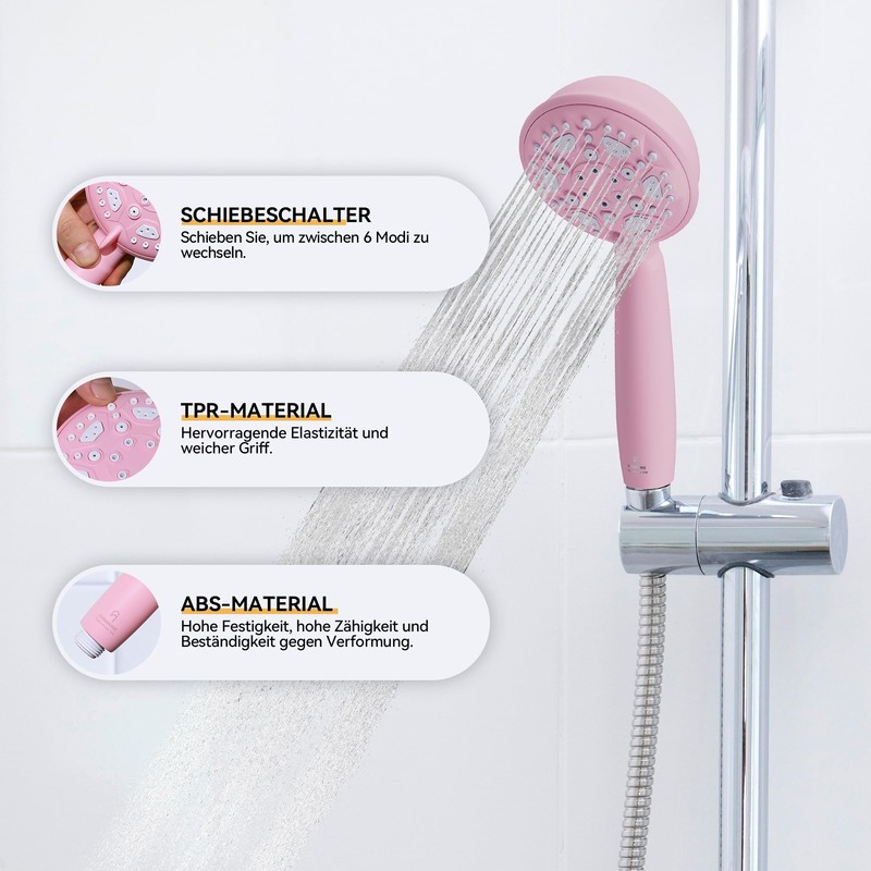 HNNHOME HNNHOME HydroPulse 100 mm Handbrause Hochdruck-Duschkopf, 6 Spr1hmodi, universeller Power-Duschkopf-Ersatz, Rosa
