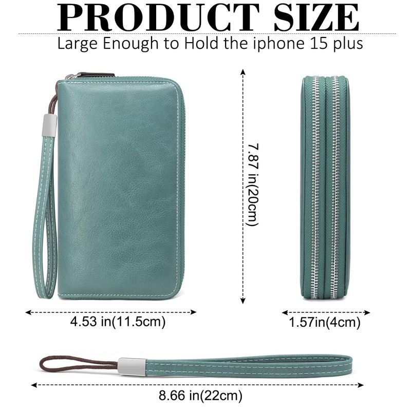 - Perfect size: these wallets for women have a size of 20 x 11.5 x 4 cm (7.87 x 4.53 x 1.57 inches), net weight: 222 g. The women's wallet with a hand strap, allows you to easily carry it in your hand or put it in your pocket. You can use it as a long wallet, card holder, wrist bag or clutch.