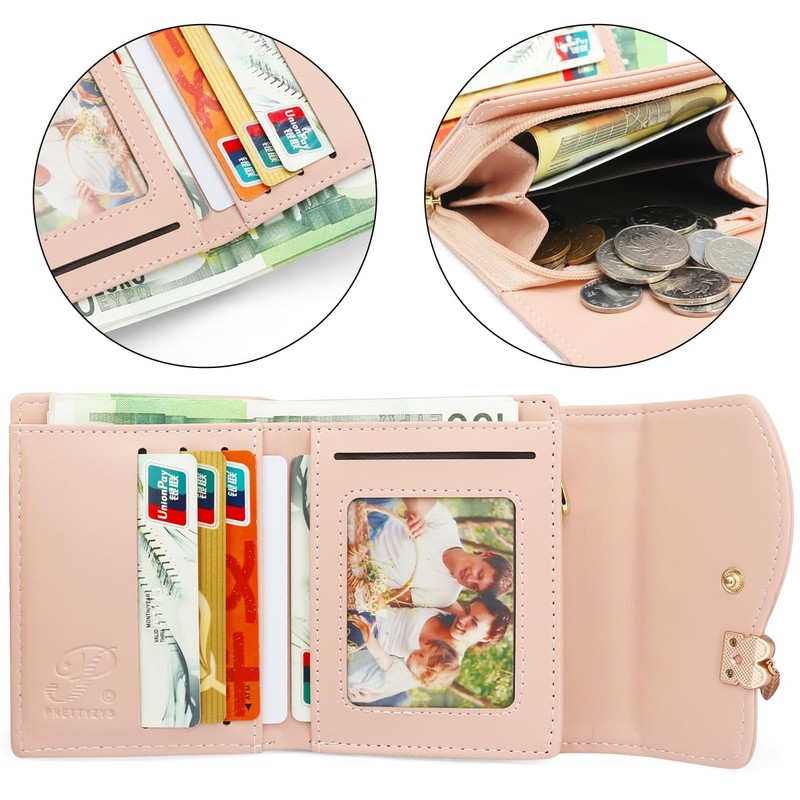 - Small but spacious: this women's wallet has 6 card slots (including 1 ID window), 1 note compartment and 1 coin pocket with zip. This small women's wallet can meet almost all your storage requirements, so you can be on the go with ease.