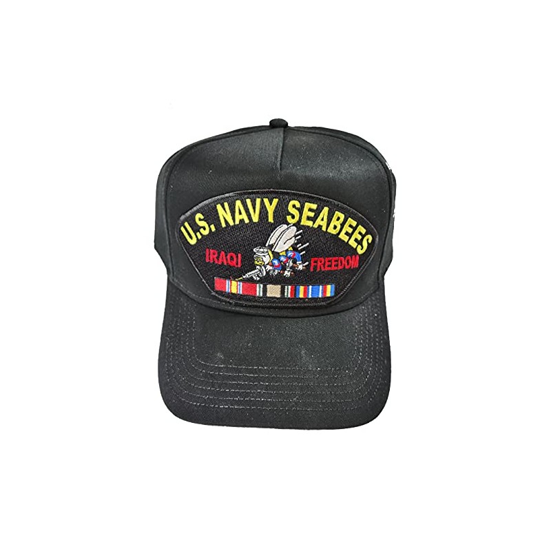 Hnp U.S. Navy Seabees Operation Iraqi Freedom HAT with BEE and Service Ribbons - Black - Veteran Family-Owned Business One Size