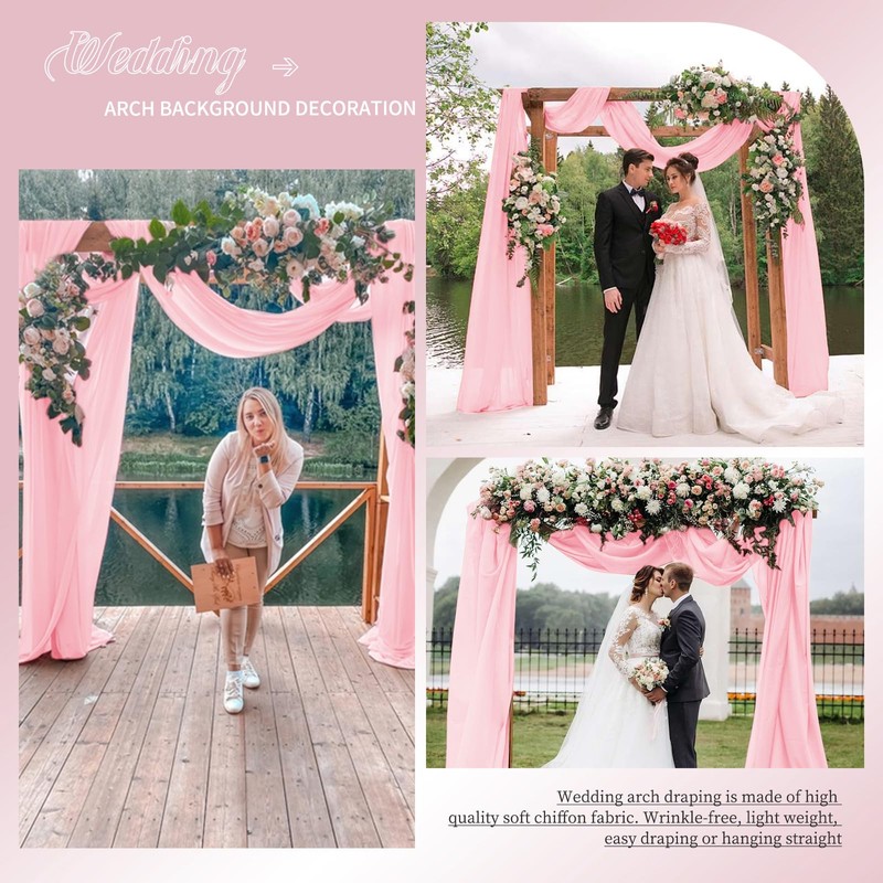 - 👑【Widely Use】Draping Fabric is perfect for wedding arches, photo backgrounds, and home interior decoration. You can hang some balloon garland, window curtain lights, artificial flowers with stem to add an elegant and romantic vibe. Pink wedding arch drape fabric is suitable for any ceremony party theme, wedding, party, bridal shower, outdoor event, Valentine's Day, etc.