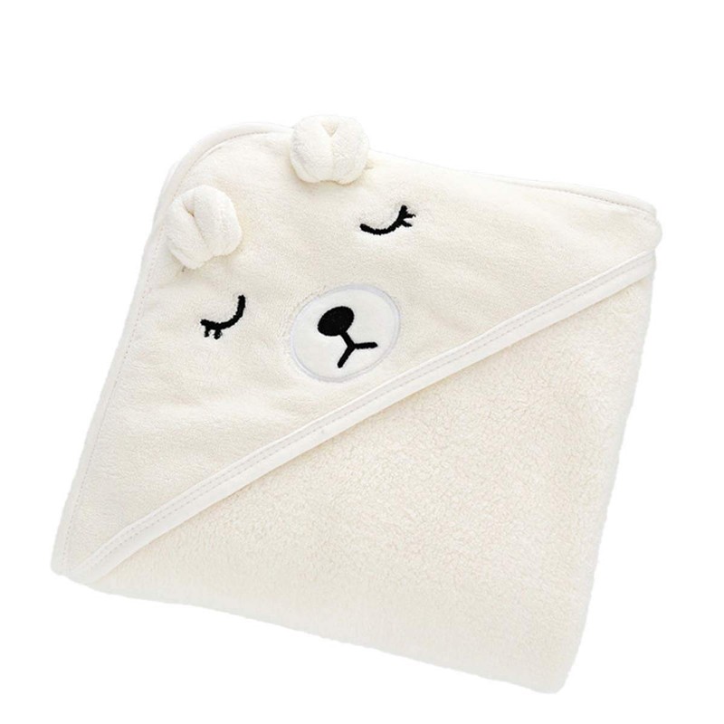 Hnyenmcko Newborn Unisex Baby Cotton Flannel Receiving Blankets Bundle Cute and Warm Hooded Swaddle for Infant Boys Girls (Bear, 80cm*80cm)